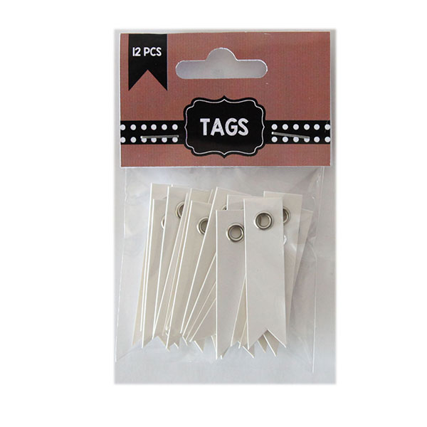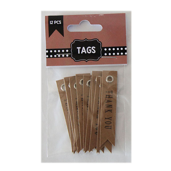 - The craft paper tags with metal eyelet packed in a polybag with customized header card.