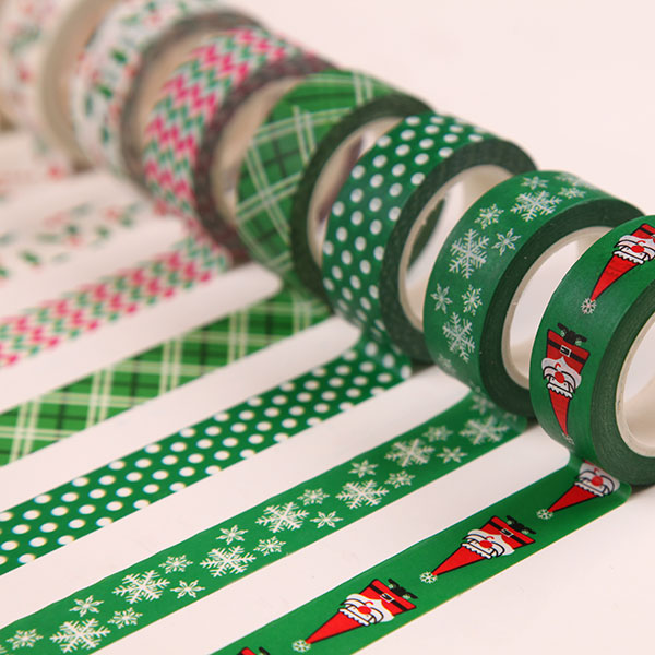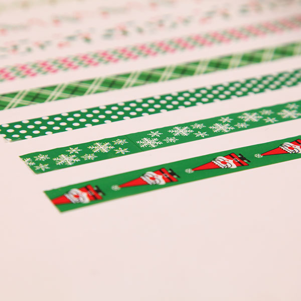 This decorative holiday masking tape is made from high quality washi paper with safe & non-toxic adhesive. So it can be pasted repeatedly and will not leave glue residue & damage the paper. Thanks to superb four-color printing technology, everything on the paper is exceptionally clear, and the colors are very rich. In addition to high quality, it also ensures the beautiful decorative effect of the product. All the materials are environmentally friendly, which passes the EN71 standard. FSC certificated paper are available.