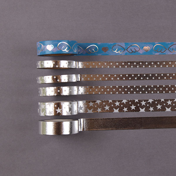 This silver foil washi tape is made of high quality washi paper with safe & non-toxic adhesive. So it can be pasted repeatedly and will not leave glue residue & damage the paper. Thanks to superb four-color printing technology, everything on the paper is exceptionally clear, and the colors are very rich. In addition to high quality, it also ensures the beautiful decorative effect of the product. All the materials are environmentally friendly, which passes the EN71 standard. FSC certificated paper are available.